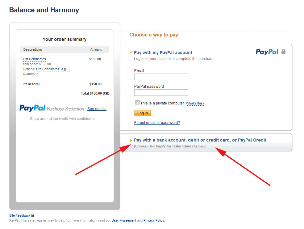 Once you select your choice from the drop down and click “buy now” you’ll be taken to the payment screen. You can pay with your PayPal account or credit cards, etc.